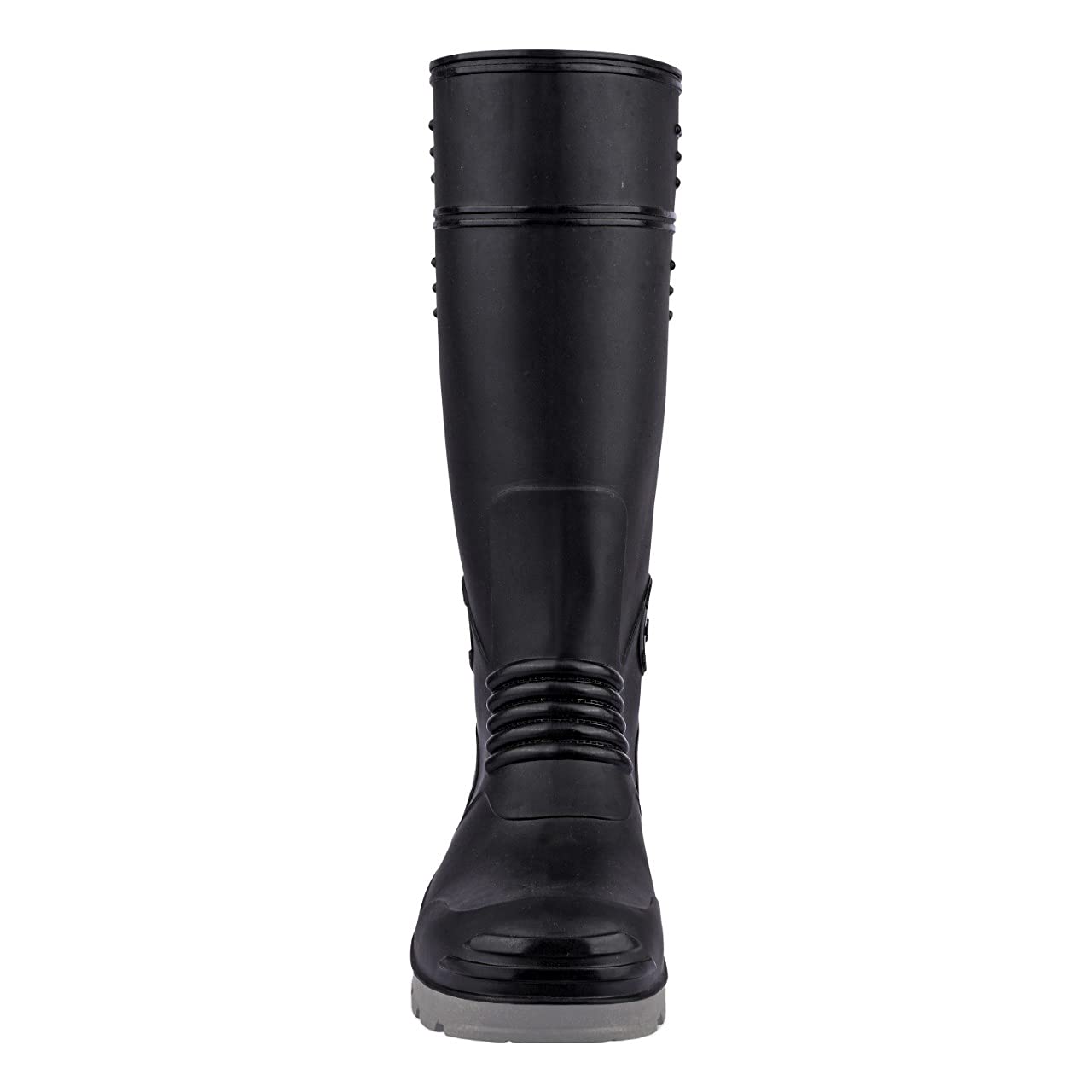 Customers find these gumboots to be of superior material and good value for the price, particularly appreciating their comfort while walking in mud and safety features including steel toe caps and protection against snake bites. They are useful for construction sites and rainy seasons, with one customer noting they provide relief in flood-prone areas. While the boots receive positive feedback for their water resistance and functionality, customers report issues with sizing, finding them too big, and weight, noting they are heavy to lift the legs.